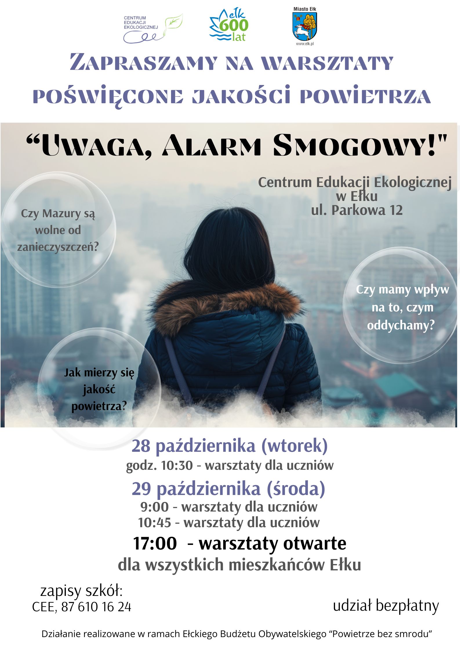 Zapraszamy na warsztaty poświęcone jakości powietrza. Zagramy w smogowe "Kto jest kim" i stworzymy trochę smogu w słoiku. Wspólnie zaprojektujemy miasto smogoodporne a sami wyposażymy się w niezbędną wiedzę, by wspólnie przyjrzeć się przyczynom, skutkom i bieżącym zagrożeniom nie po to by załamywać ręce: aby stawić czoła temu ważnemu wyzwaniu.