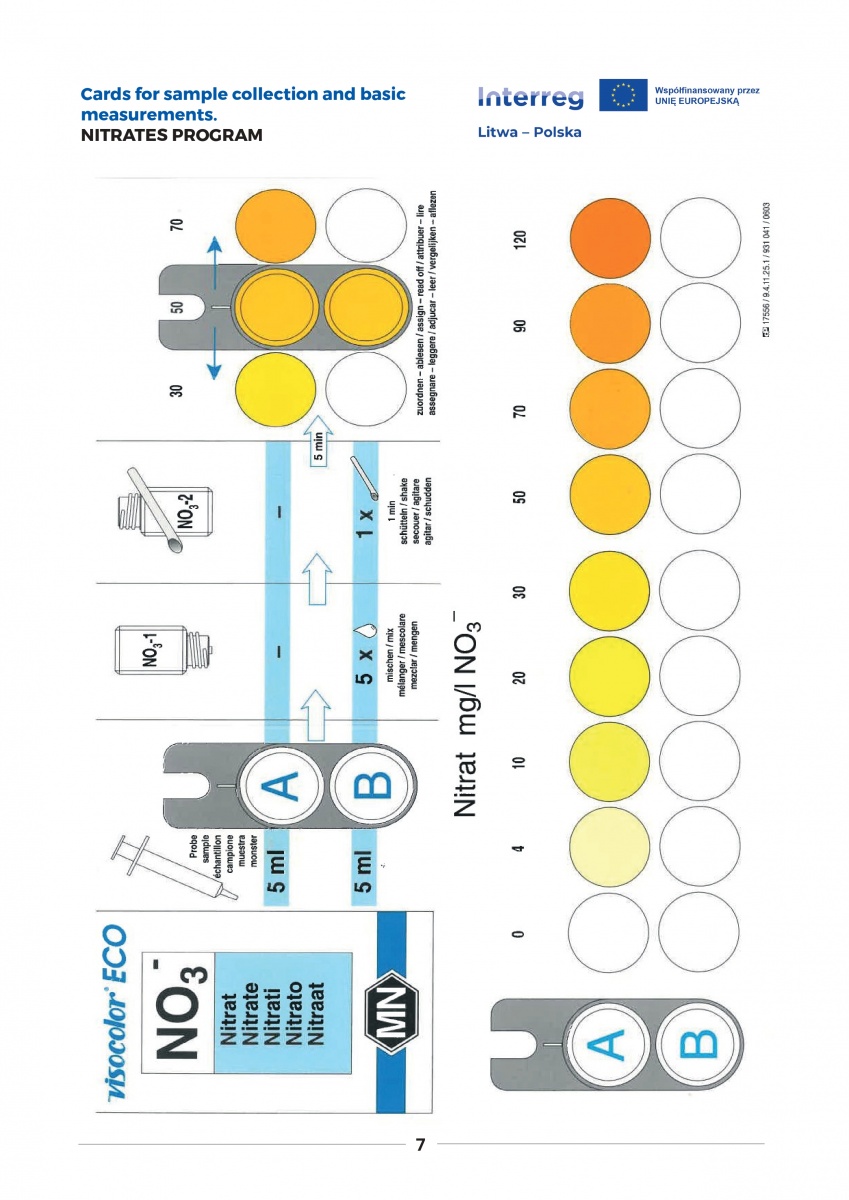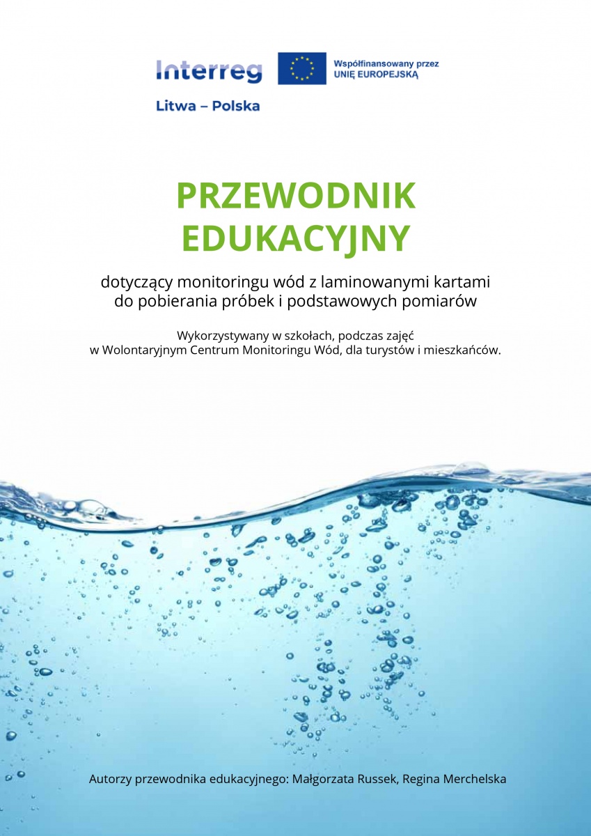 Przygotowano i wydrukowano poradnik edukacyjny w nakładzie 500 sztuk, wraz z laminowanymi kartami do pobierania próbek i podstawowych pomiarów również w ilości 500 sztuk (w języku litewskim 250 sztuk oraz języku angielskim 250 sztuk).