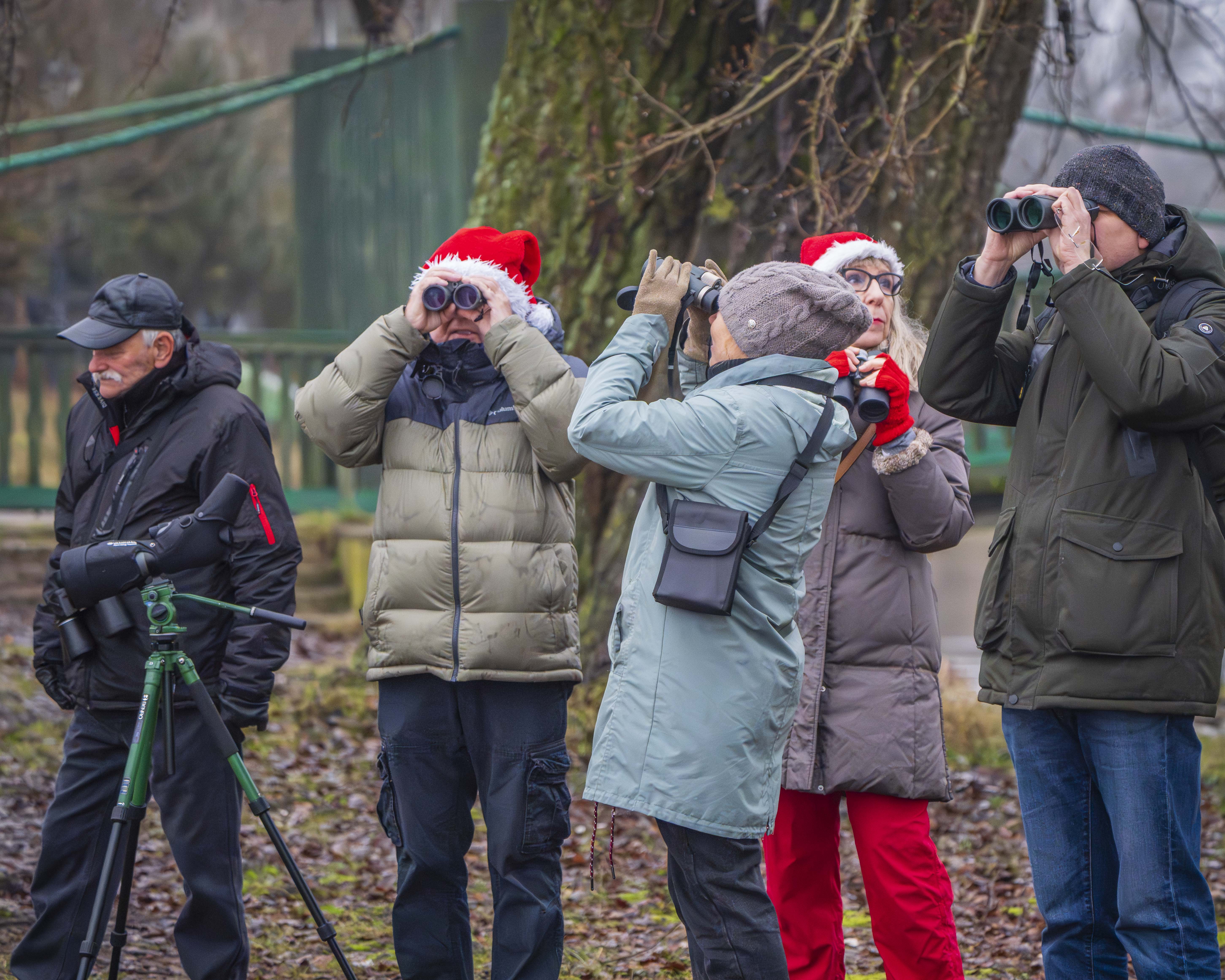 Przedświąteczny, poranny spacer ornitologiczny odbył się 20 grudnia 2025 roku. Wzięło w nim udział dziewięć osób, które mimo niezbyt sprzyjającej aury spędziły wspólnie około półtorej godziny w terenie. Temperatura w okolicach +2°C, a krajobraz spowity był szarością, mgłą i drobną mżawką. Obserwacje prowadziliśmy w pobliżu CEE, nad Jeziorem Ełckim oraz wzdłuż rzeki Ełk. Udało się zaobserwować 15 gatunków: bogatka, dzwoniec, gawron, gil, kawka, krzyżówka, łabędź niemy, mewa siwa, mewa srebrzysta, modraszka, nurogęś, sikora uboga, sójka, sroka, śmieszka.